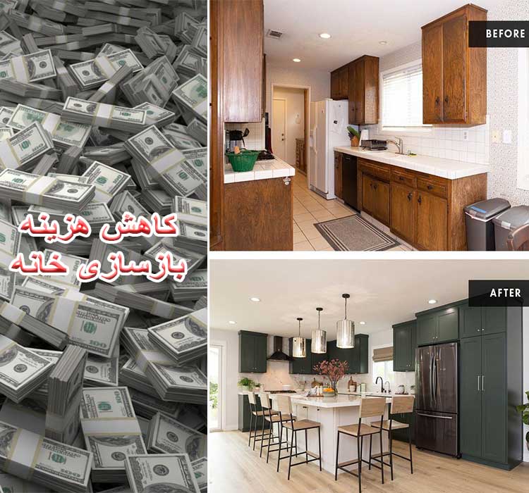 تا حد امکان از مواد و وسایلی که قابل تعمیر یا بازسازی هستند، استفاده کنید. برای مثال، می‌توانید کابینت‌های قدیمی را رنگ کنید یا با تعویض دستگیره‌ها و درب‌ها، آن‌ها را به‌روز کنید. این کار نه‌تنها هزینه‌ها را کاهش می‌دهد، بلکه به محیط‌زیست نیز کمک می‌کند.