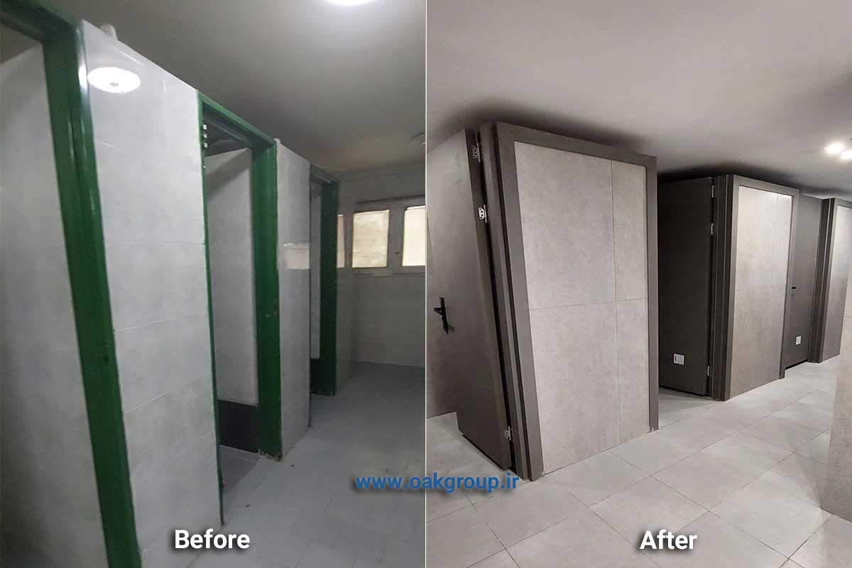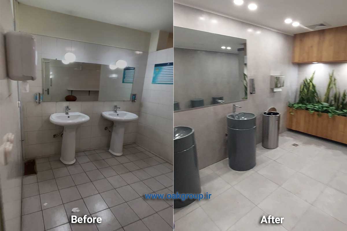چهار عدد سرویس زنانه و مردانه در طبقات دوم و سوم سازمان مدیریت صنعتی که پس از تخریب و سبک سازی و لوله کشی جدید فاضلاب و تاسیساتی سرویس ها به صورت کاملا اصولی و تغییرات روشنایی و ایزوگام کف و سایر موارد زیرسازی به بهترین شکل انجام گرفته است.