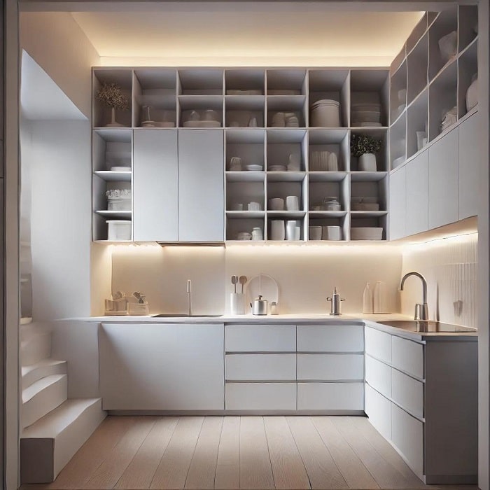 - نصب نورپردازی زیر کابینت: افزودن نورپردازی LED زیر کابینتها میتواند بهطور چشمگیری فضای آشپزخانه شما را روشن و مدرنتر کند. نورپردازی زیر کابینتها باعث ایجاد جلوهای جذاب و شیک میشود و همچنین کارکرد آنها را بهبود میبخشد.