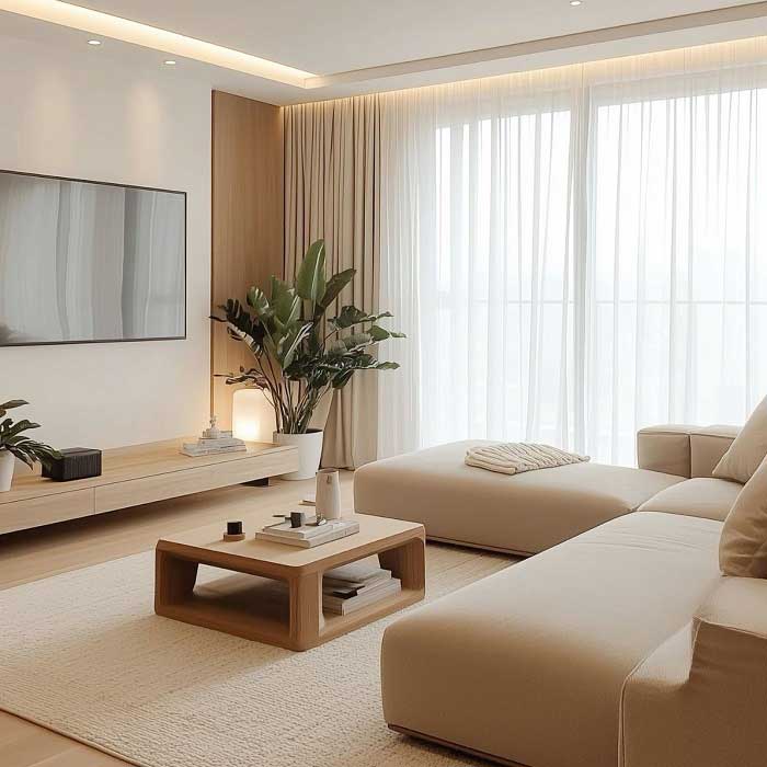 اتاق نشیمن به عنوان یکی از مهم‌ترین فضاهای خانه، باید بازتاب‌ دهنده ویژگی‌های سبک مینیمال باشد. در بازسازی این بخش، به موارد زیر توجه کنید: