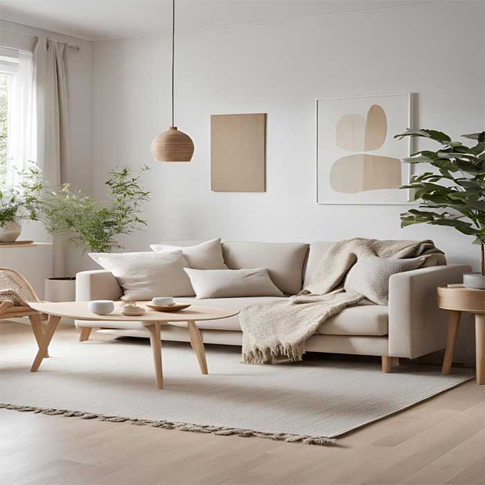 • دکوراسیون محدود: استفاده از تعداد محدودی از وسایل تزئینی مانند تابلوهای هنری مینیمال یا گلدان‌های ساده.