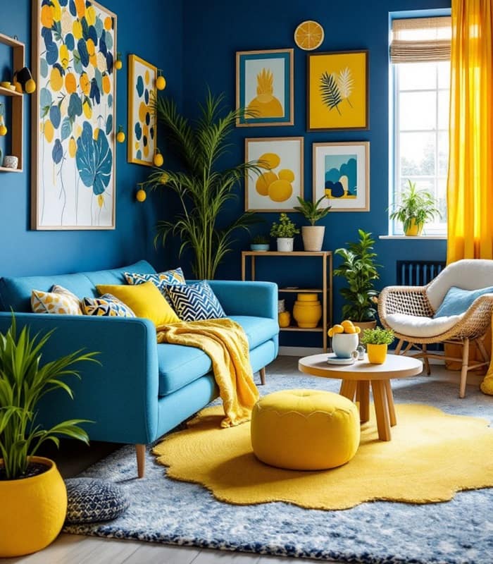 • زرد لیمویی: این رنگ روشن و شاد به فضا انرژی می‌بخشد و می‌تواند در لوازم دکوری، کوسن‌ها و تابلوهای هنری استفاده شود.