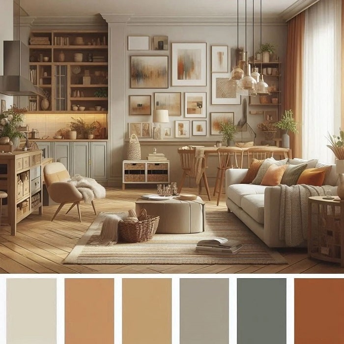 • خاکی و ماسه‌ای: رنگ‌هایی مانند خاکی روشن و ماسه‌ای که حس زمین و طبیعت را به فضا می‌آورند.