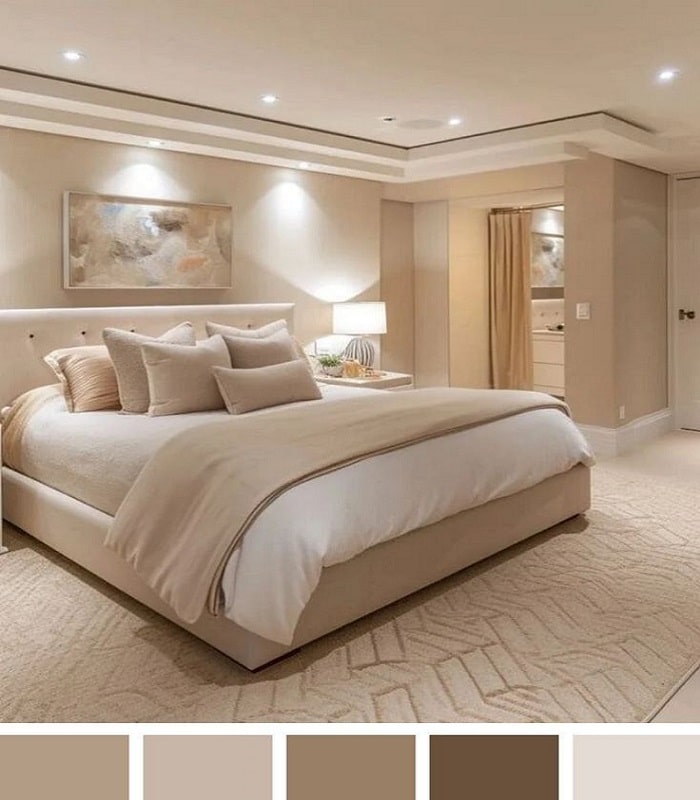 • قهوه‌ای خاکی و بژ: رنگ‌هایی که حس گرما و راحتی را به فضا منتقل می‌کنند و به‌راحتی با دیگر رنگ‌ها ترکیب می‌شوند.
